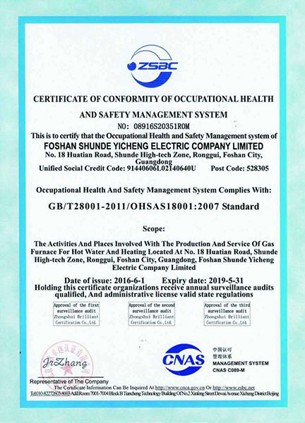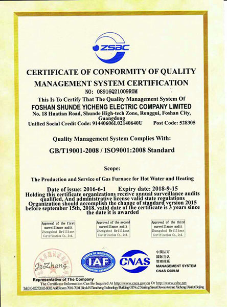 佛山市順德區怡成電器有限公司屬下有八部一室,三大車間,工程技術人員和管理人才100多人,一大批現代化五金生產設備,自動噴涂生產線和功能齊全的現代化生產線,公司為做好壁掛爐產品,從一開始就選用高、精、尖的生產設備和檢測設備和自動翻版檢測設備。連續配氣系統設備,NOX綜合測試裝置,五合一全電腦綜合測試設備儀器,測試的準確性、可靠性及耐久試驗都在同行具有水平。